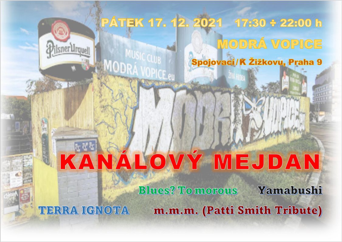 - 282 | 17. 12. 2021, 18:00 h = Modrá vopice, Praha 9 – Vysočany, Spojovací 381/1: Šumákův 10. Kanálový mejdan. Kromě TERRY hráli Blues?To morous, Yamabushi a Mmmband (Patti Smith Tribute). Poslední koncert se zakládající členkou TERRY – Danou Janovskou (key), která skončila se svými pravidelnými hudebními aktivitami… 😐 (ale hostování v budoucnu však nevylučuje) ~~~ PLAKÁT